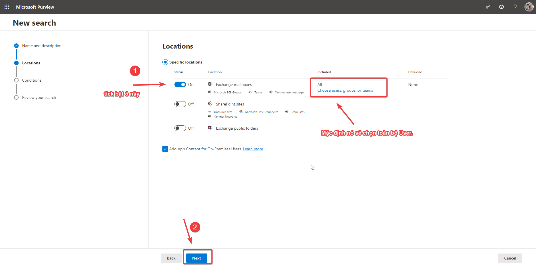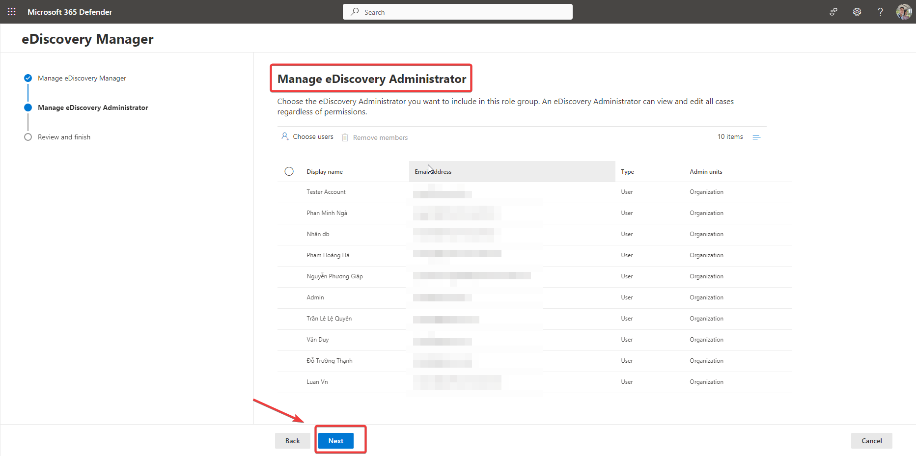 B6 : Tương tự như Bước 5 ( Manage eDiscovery Administrator ) Chọn All User