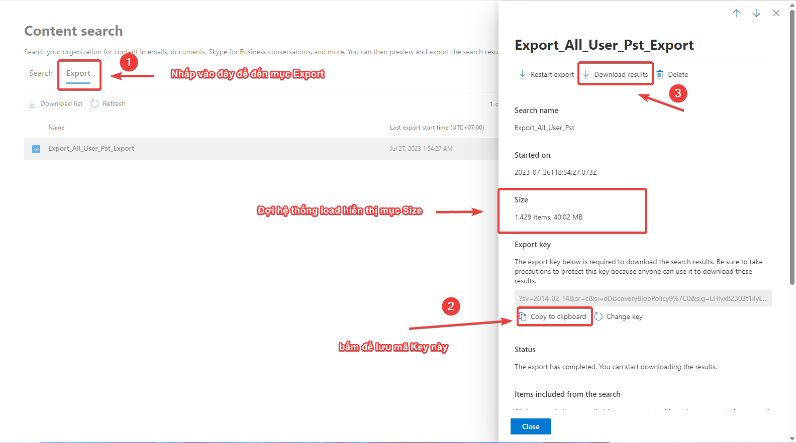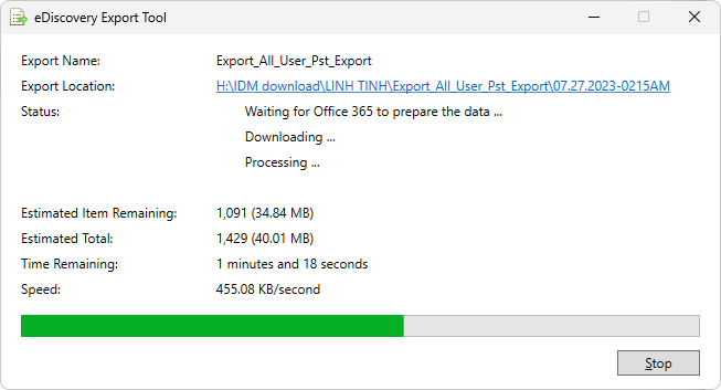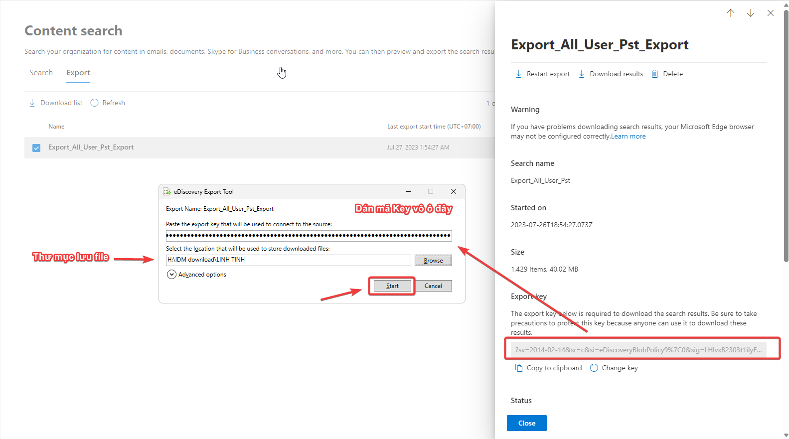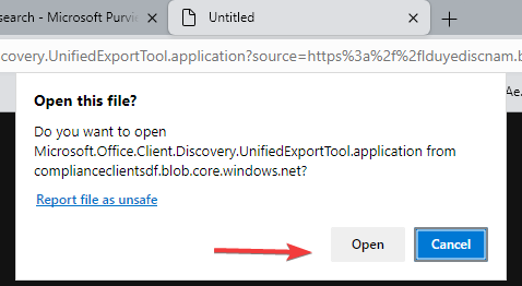 Khi bấm Open sẽ xuất hiện bảng eDiscovery Export Tool