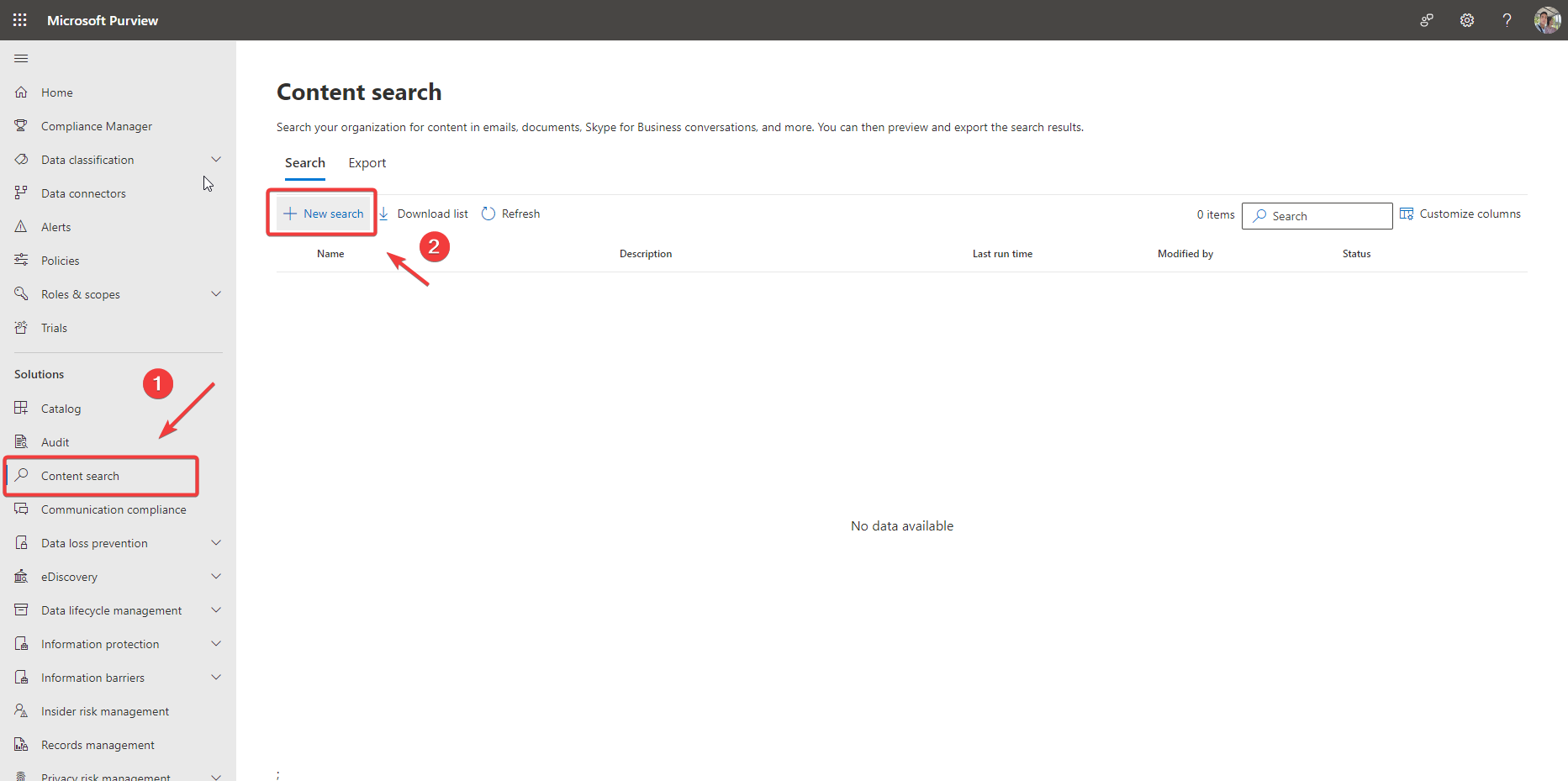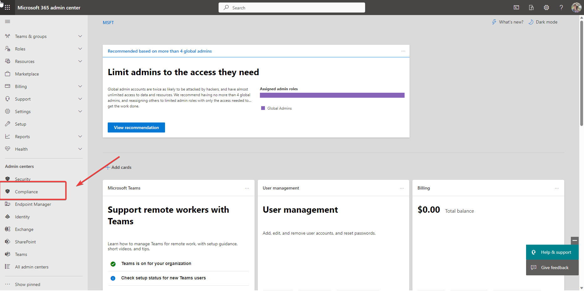 Tại Admin Center --> Chọn Compliancearrow-up-right