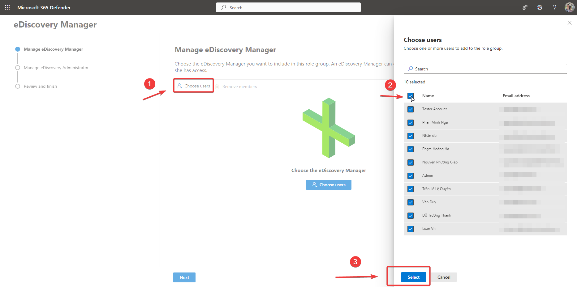 B5 : Tại mục Manage eDiscovery Manager chọn All User và bấm Select